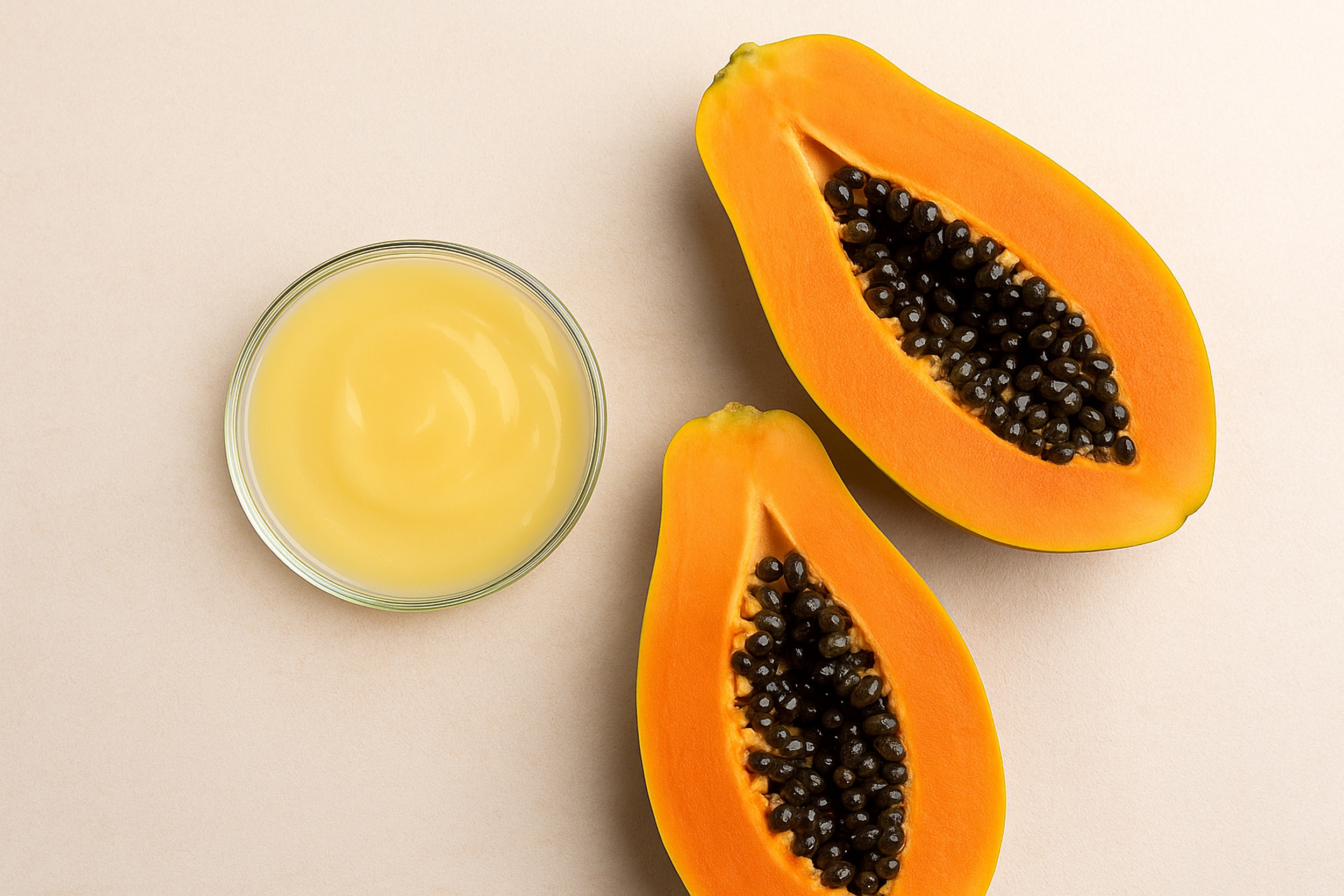 to enzym pochodzący z papai, znany ze swoich właściwości złuszczających. W delikatny sposób pomaga usuwać martwe komórki naskórka. Dzięki temu może wspierać oczyszczanie i świeżość skóry głowy.